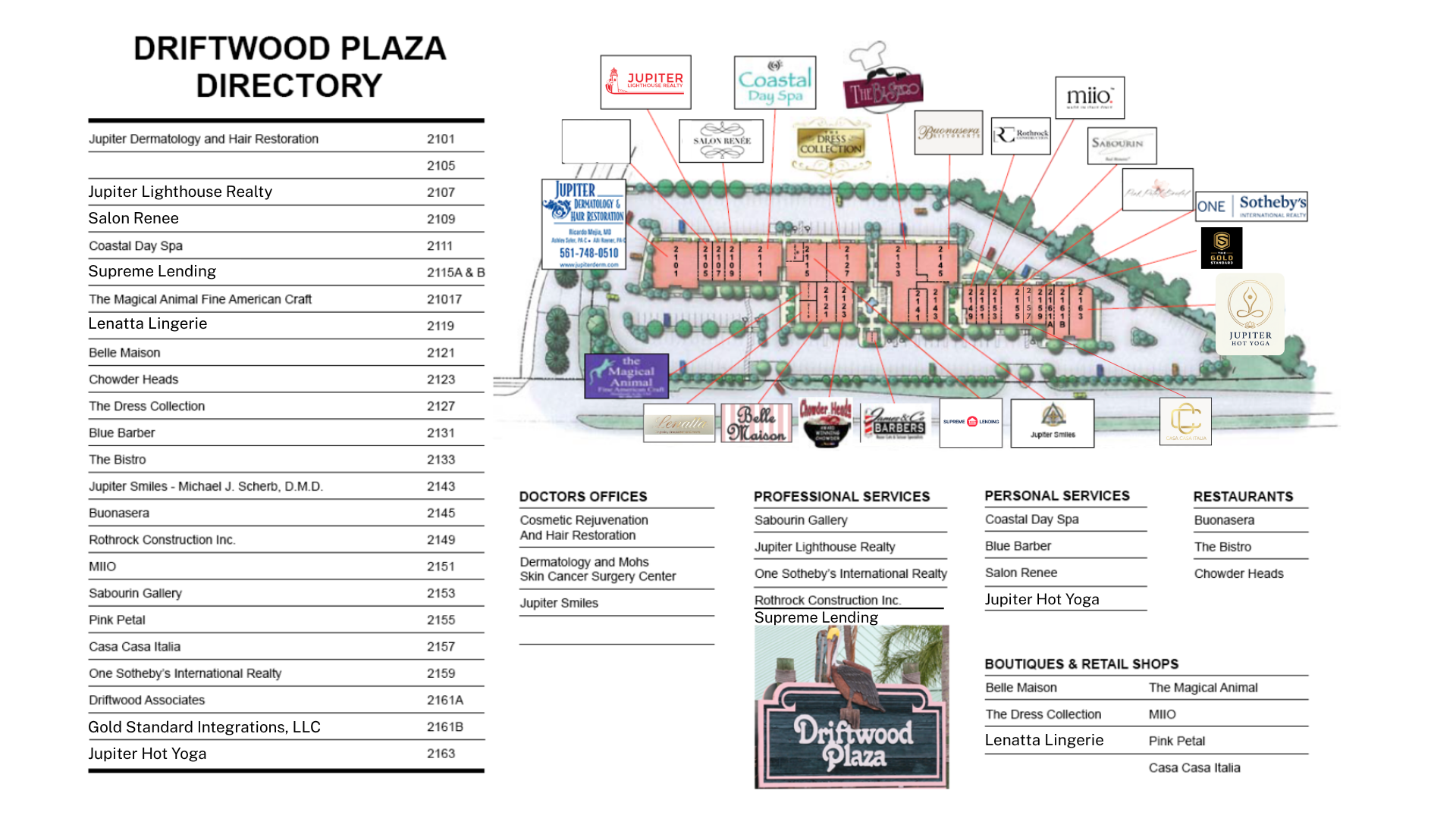 Expansive US Highway One exposure for your business. Stroll quaint covered walkways & cool shaded courtyards. Lush tropical landscaping & relaxing pond with waterfall. 44,000 +/- meticulously maintained multi building complex. Join other successful long term businesses & professionals. Walk to residential areas & beaches. Courier & newspaper boxes on site. Ample shaded parking.